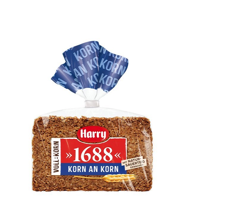 Unser frisches und kerniges Harry >>1688<< Korn an Korn wird aus dem vollen Korn mit Keim und Randschichten gebacken und erhält dadurch sein unverwechselbares Aroma. Durch die Verwendung von Natursauerteig wird der besonders herzhafte Geschmack des Roggenvollkornbrots zusätzlich vertieft und verfeinert, sodass jeder Bissen ein wahres Geschmackserlebnis ist.
