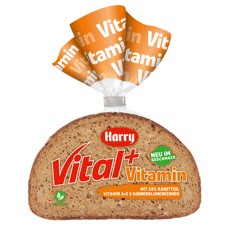 Unser Harry Vital+Vitamin ist ein saftiges Weizenmischbrot, welches sich durch feine Karotten auszeichnet, die für eine zarte Süße sorgen. Knackige Sonnenblumenkerne verleihen dem Brot eine angenehme Textur. Voller Geschmack mit Ballaststoffen und Vitamin E, ergänzt durch Vitamin A zur Unterstützung der normalen Funktion des Immunsystems.