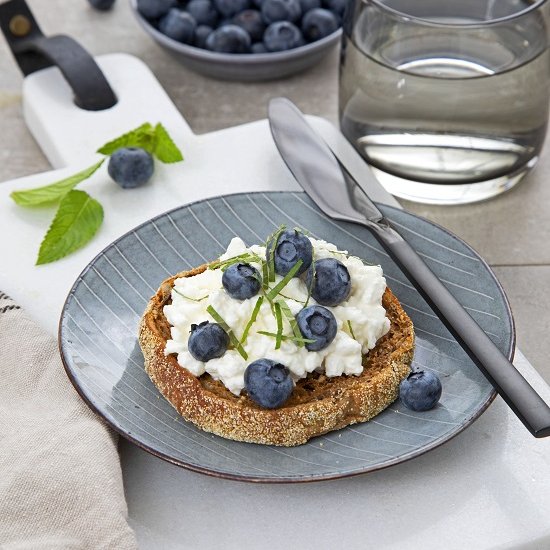 Eiweiss Toastbrötchen mit Hüttenkäse und Blaubeeren